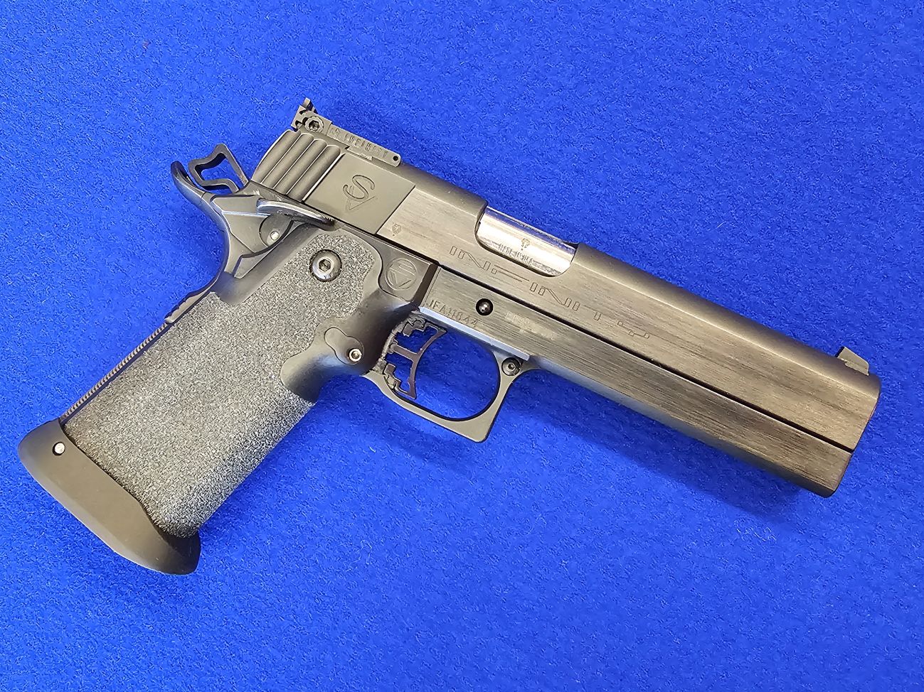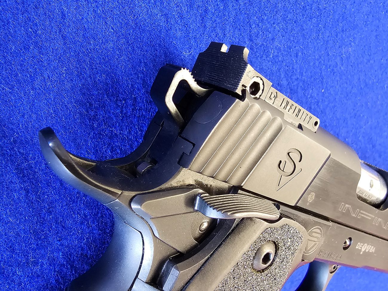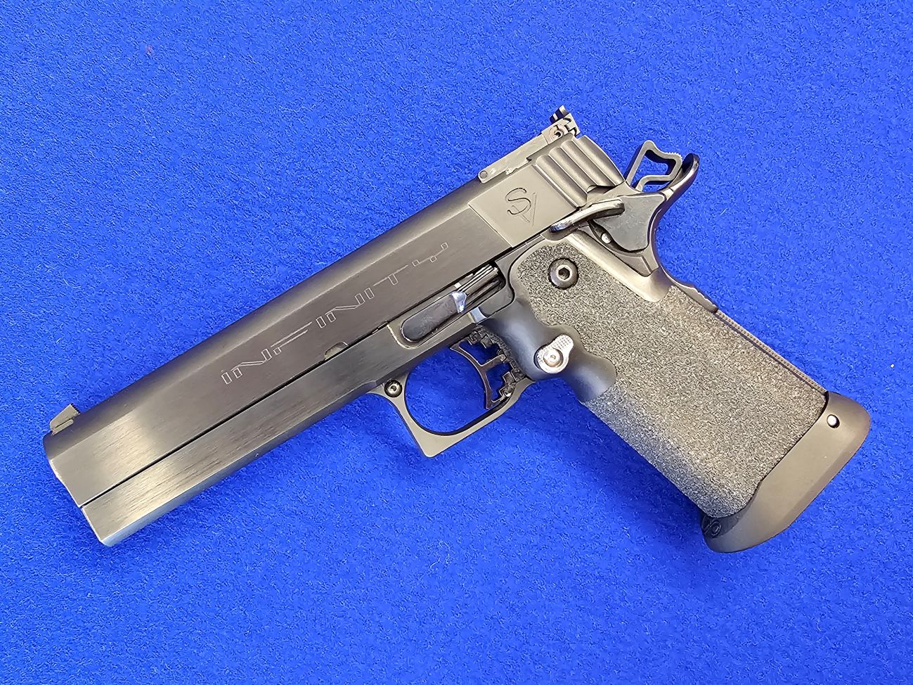 Bei der Basiswaffe handelt es sich um eine 5inch Infinity Wide Body mit langem Dust Cover im Kaliber .40S&W mit Bull Barrel.